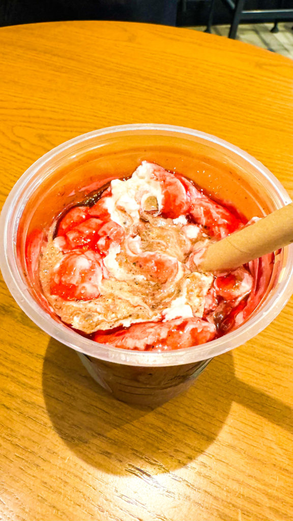 そういえばスタバの新作「ルージュ オペラ フラペチーノ」飲んできたわ。