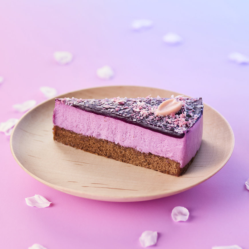 なめらかなチーズムースにカシスの酸味がアクセント。トッピングのチョコで、桜の花びらが舞う夜空をイメージしました。